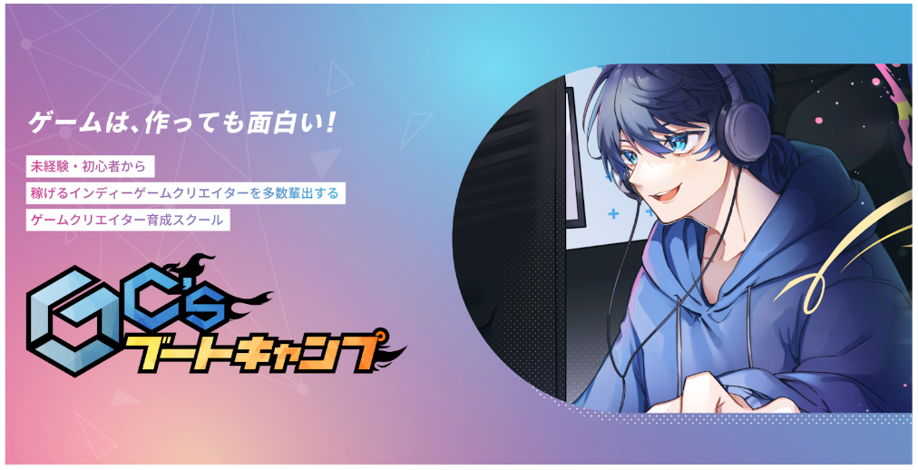 登録者数6万人を誇るゲーム系Youtuberのひろはすと、Unity書籍の著書であり、インディーゲーム展示会へ多数出展しているゲームクリエイターの信虎(ノブトラ)が、「誰もが自由にゲームを創造することの出来る世界を実現する」をビジョンに共同設立したオンラインスクール『GC’sブートキャンプ』。(https://gcsbootcamp.com)