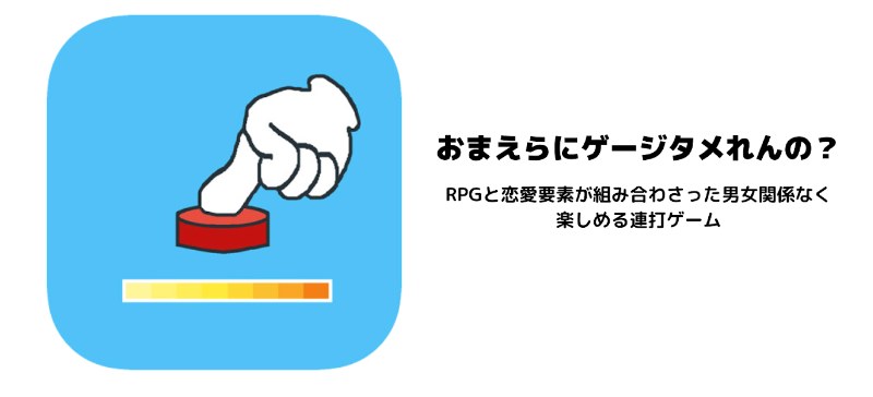 煽られるようなインパクトあるタイトルが特徴的な「おまえらにゲージタメれんの?」は、RPGと恋愛要素が組み合わさった男女関係なく楽しめる連打ゲーム。