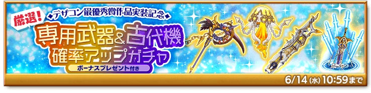 ■人気の専用武器&古代機が確率アップ!「厳選!専用武器&古代機確率アップガチャ」販売中!
