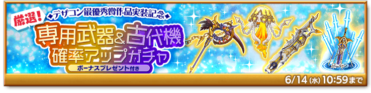 ■人気の専用武器&古代機が確率アップ!「厳選!専用武器&古代機確率アップガチャ」販売中!