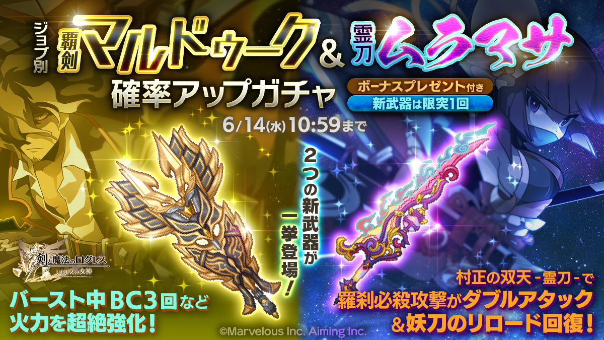 ■新たな覇剣・霊刀が一挙に登場!「ジョブ別 覇剣マルドゥーク&霊刀ムラマサ確率アップガチャ」販売中!