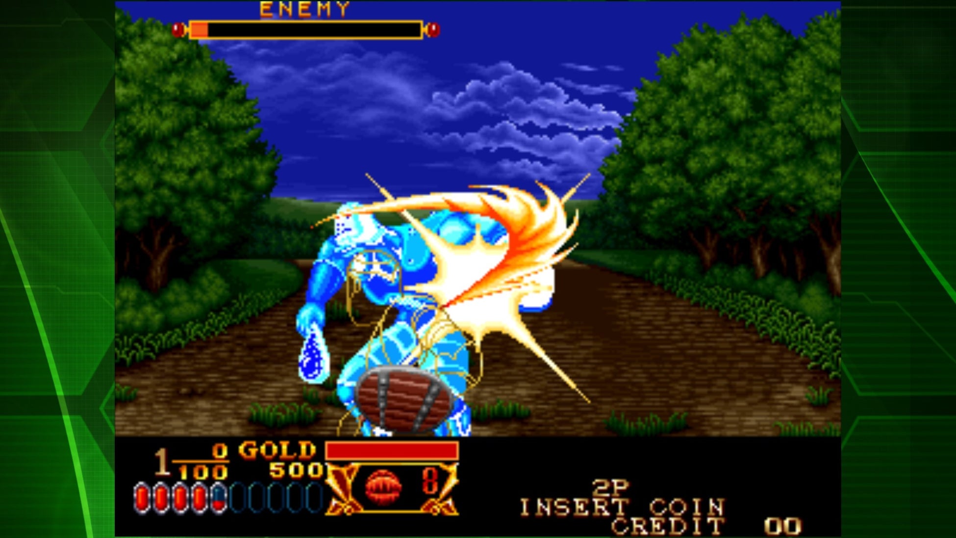 「クロスソード」は1991年にSNKから発売されたアクションゲームです。魔人ナウシズを倒すため、武器攻撃や魔法攻撃、防御などを駆使して全7ステージを戦い抜きましょう。3D視点のゲーム画面で、2人同時プレイも可能です。獲得したGOLDで武器を購入したり、キャラクターが成長するRPG要素も搭載されています。