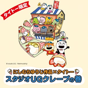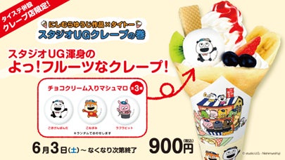 にしむらゆうじの描き下ろしイラストを使用したコラボクレープ「スタジオUG渾身の よっ!フルーツなクレープ!」が登場です!