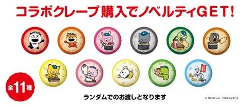 また、クレープを一つお買い上げごとにノベルティ缶バッジを一つプレゼントいたします。