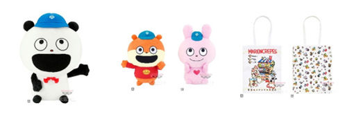 クレープ店のシンボルロゴ入りキャップをかぶったぬいぐるみや、限定イラストをデザインに取り入れたトートバックが登場!タイトーでしか手に入らない限定プライズです。