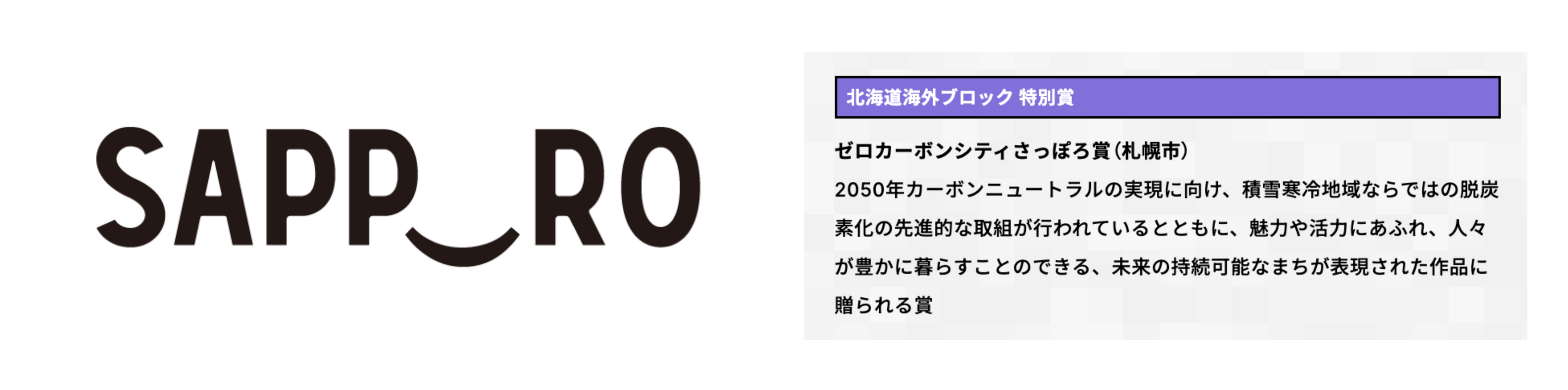6月1日時点では特別賞として、札幌市より「ゼロカーボンシティさっぽろ賞」の授与が決定しています。(地区大会本選特別賞は今後追加される予定です)