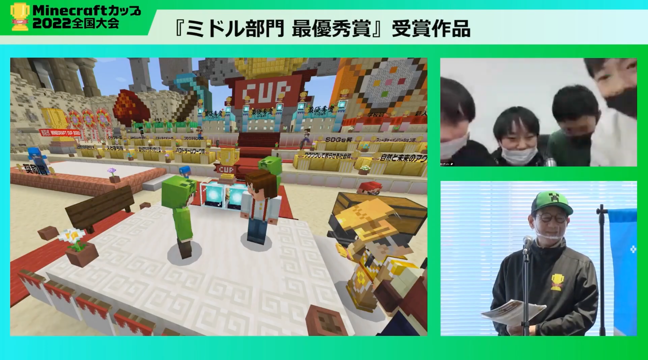 Minecraftカップは、18歳の子ども達を対象とした教育版マイクラを使った作品コンテストです。2019年から始まり今年で5回目の開催となります。昨年度の「Minecraftカップ2022全国大会」から名称を改め、今年度は「第5回Minecraftカップ」として、子ども達のチャレンジを後押ししていきます。また昨年度より引き続き、スペシャルサポーターの日本財団とタッグを組んで大会運営を行っていきます。