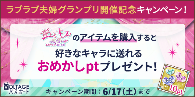 毎日の胸キュンが貯まる!無料会員ポイントサイト「VOLTAGEパスポート」(以下、「ボルパス」)にて、「誓キスLR」のキャンペーンを開催中です。