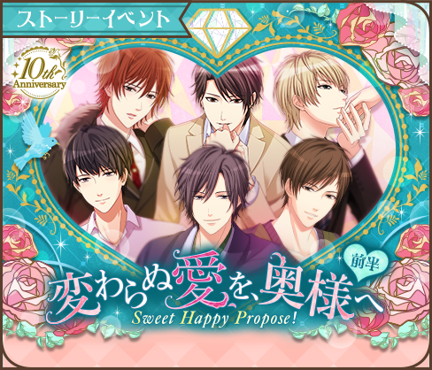 10周年を記念して、全10人のカレが登場する豪華なストーリーイベントを開催いたします。周年に相応しく、「プロポーズ」をテーマにした甘くとろけるストーリーをお届けいたしますのでお楽しみに♥