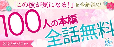 支えてくださったファンの皆様へ感謝を込めて、アプリでは100キャラクターの本編を全話無料でお届けするほか、新作ストーリーや6周年衣装のカレが手に入る記念イベントなど、特別な企画を多数ご用意しました。期間限定となりますので、この機会に「100恋+」6周年を存分にお楽しみください。