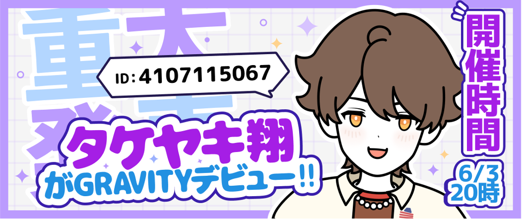 GRAVITYを盛り上げている、声とチャットで交流できる「音声ルーム」に、YouTubeチャンネル登録者数230万人超えの人気動画クリエイタータケヤキ翔が登場します。大食い、ラトゥラトゥのお話など音声ルームでどのようなトークが繰り広げられるのか!?トークを見逃さないよう、事前に「GRAVITY」をダウンロードして当日音声ルームでのリアル生配信をお楽しみください。