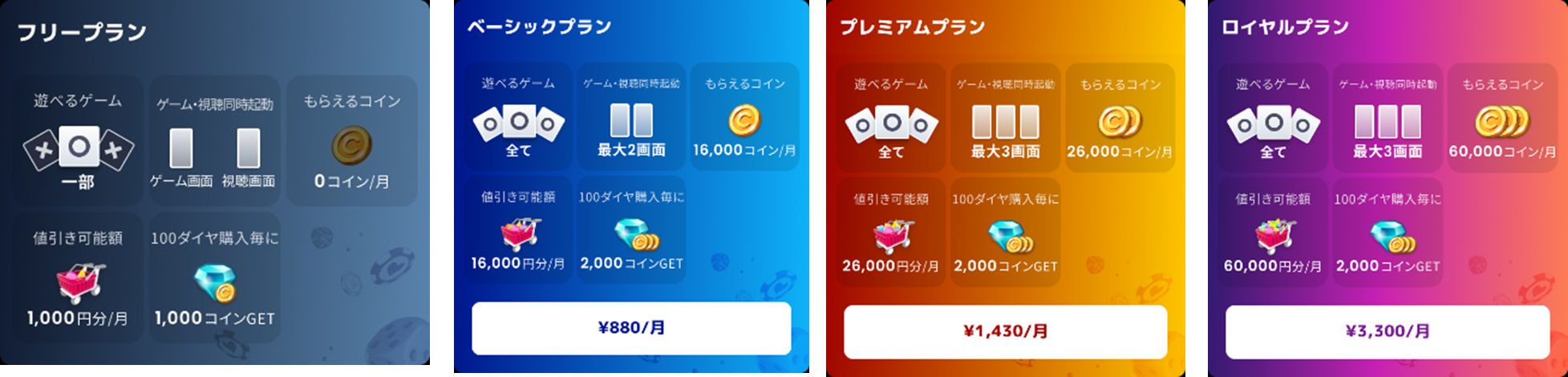 「GAPOLI」には気楽に楽しめる無料のフリープランから大満足のロイヤルプランまで利用される皆様に応じた複数の利用コースを準備、あなたに合ったコースを選んで楽しもう!