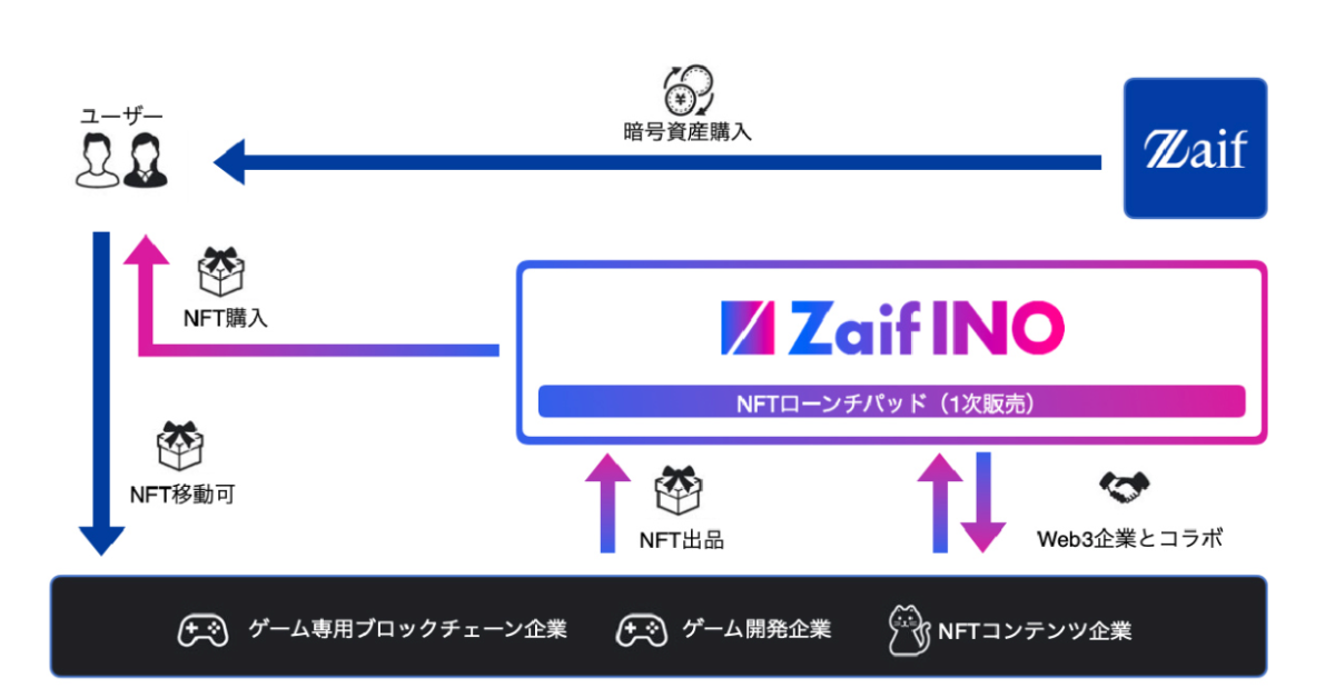Zaif INO は NFTの一次販売に特化したNFT マーケットプレイスです。マルチチェーンに対応し、幅広いプロジェクトのNFT取り扱いを実現しました。また、GameFi初の審査制を導入し、ユーザーに向けクオリティーを担保したサービスや、参加プロジェクト側へは、事業拡大やスケールアップさせたいタイミングで活用できるサービスを提供しています。