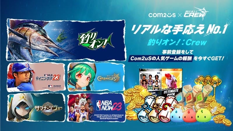 今回の『釣りオン!:Crew』のクロス事前登録キャンペーンは『釣りオン!』のほか、『サマナーズウォー: Sky Arena』、『サマナーズウォー:クロニクル』、『MLB:9イニングス23』、『NBA NOW 23』など、Com2uSの人気ゲームで展開されます。