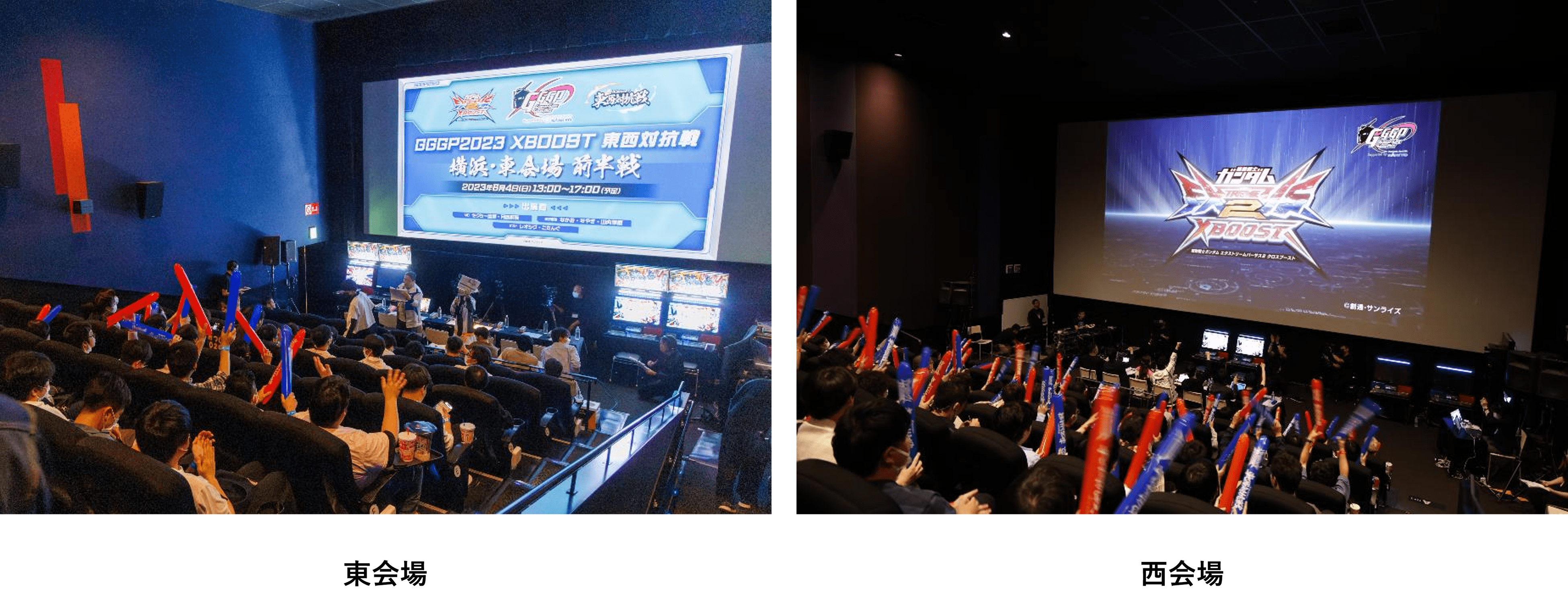 本イベントは株式会社創通が2018年から主催するガンダムゲームのesports大会「GGGP(GUNDAM GAME GRAND PRIX)」のスピンオフ大会です。TOHOシネマズ株式会社が運営する「TOHOシネマズ ららぽーと横浜(以下、東会場)」(所在地:神奈川県横浜市都筑区)と、「TOHOシネマズ ららぽーと福岡(以下、西会場)」(所在地:福岡県福岡市博多区)を会場に、事前エントリーを行ったプレイヤーを中心に対抗戦を行いました。全対戦終了時点で、より多くポイントを獲得した会場が勝利となるイベントとなり、YouTube GGGPチャンネルでの無料配信や会場で大いに盛り上がりました。