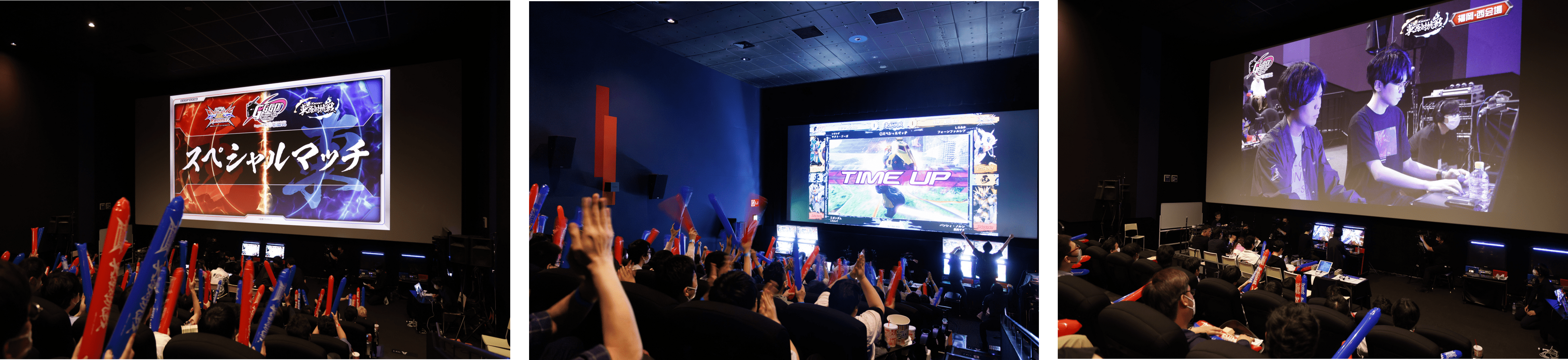 これから熱戦を繰り広げるプレイヤーや観覧者たちがTOHOシネマズのシアターに続々と集まり、オープニングが東西で開催されました。東会場と西会場ではそれぞれ別々にYouTubeでの無料配信が行われており、応援する会場の配信を追いかけても良し、両会場の配信の同時視聴も良しと、家にいながらも様々な楽しみ方ができるようになっていました。