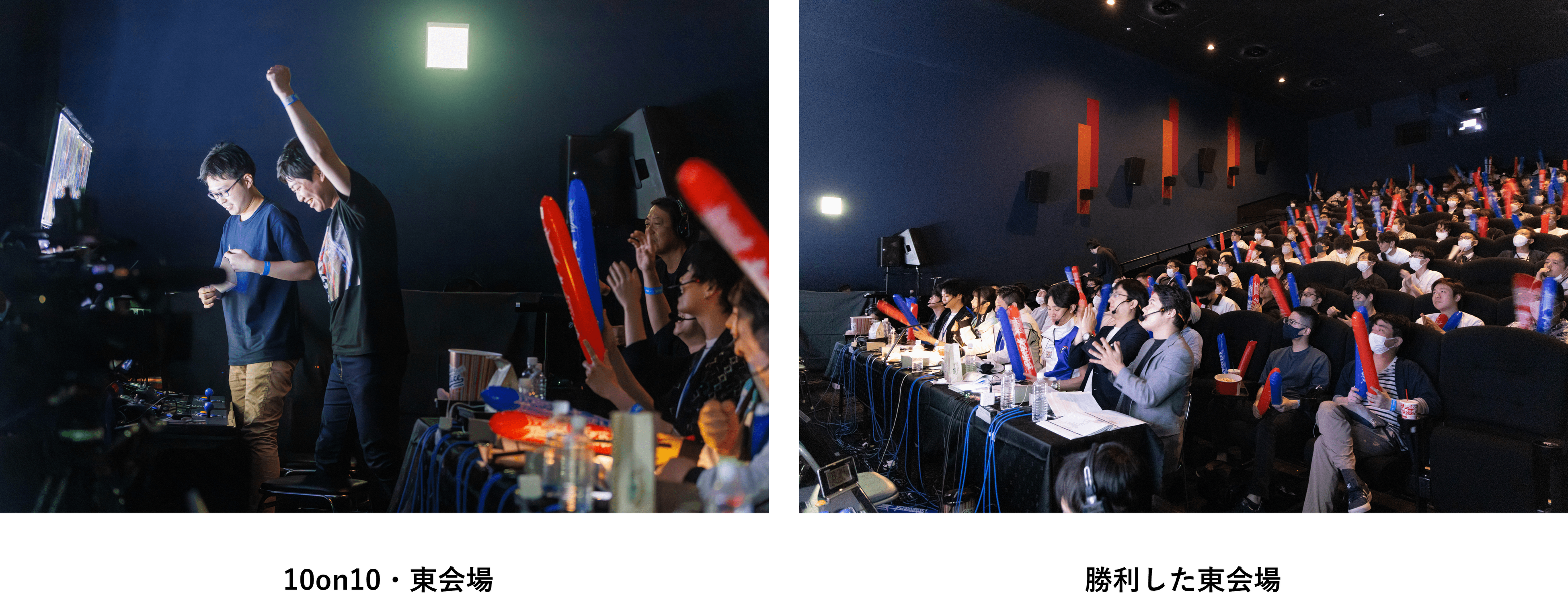 後半に行われたのは「10on10」。前日に東京と福岡にあるアミューズメント施設にて行われた前夜祭を勝ち上がった5組10名による団体戦です。