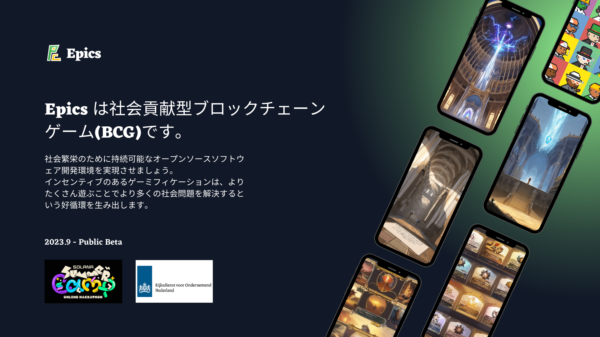 オープンソースへの積極的な投資を増やすことは社会的に重要なミッションです。Epics DAO は社会貢献型ブロックチェーンゲームを開発・運用することでこのミッションを遂行します。