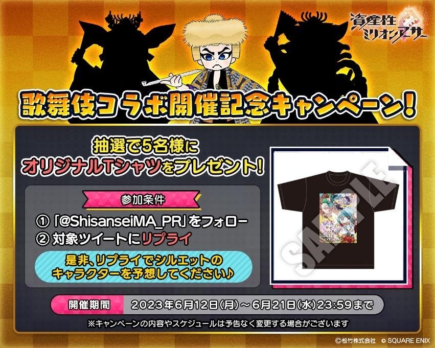「歌舞伎×資産性ミリオンアーサー」コラボ実施を記念して、公式Twitterにてフォロー&リプライキャンペーンを開催中です。