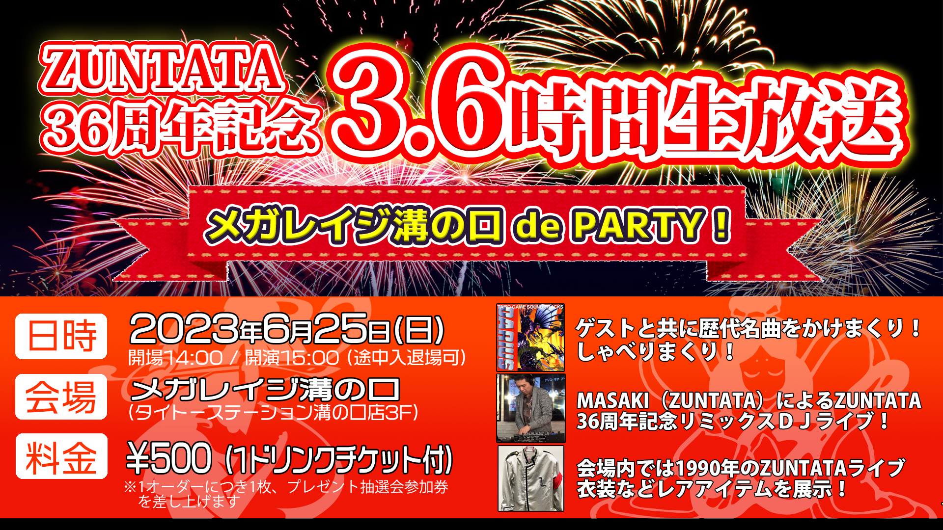 ◆「ZUNTATA 36周年記念3.6時間生放送~メガレイジ溝の口 de PARTY!~」