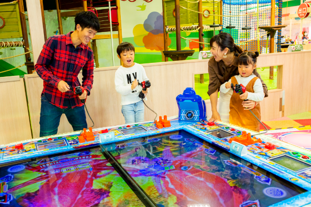 『釣りスピリッツ』は、全国のゲームセンターで人気の魚釣り体験ゲーム。大画面モニターを泳ぎまわる魚を、サオ型コントローラー『サオコン』を使って釣り上げる体感型ゲームです。メダルを使ってロッドを選び、魚が釣れるとメダル獲得。オオモノほど大量のメダル獲得が期待できます。