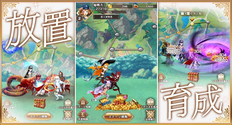 スマートフォン・パソコン・タブレットのブラウザに対応した放置系RPG。