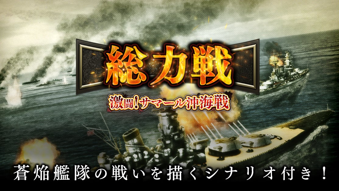 株式会社リベル・エンタテインメントは、男性向けオリジナルタイトル『蒼焔の艦隊』(そうえんのかんたい、iOS/Android/DMM Games)について、6月25日(日)より、イベント「総力戦」が開催されるほか、戦艦「大和(サマール沖海戦)」が新たに参戦することをお知らせします。