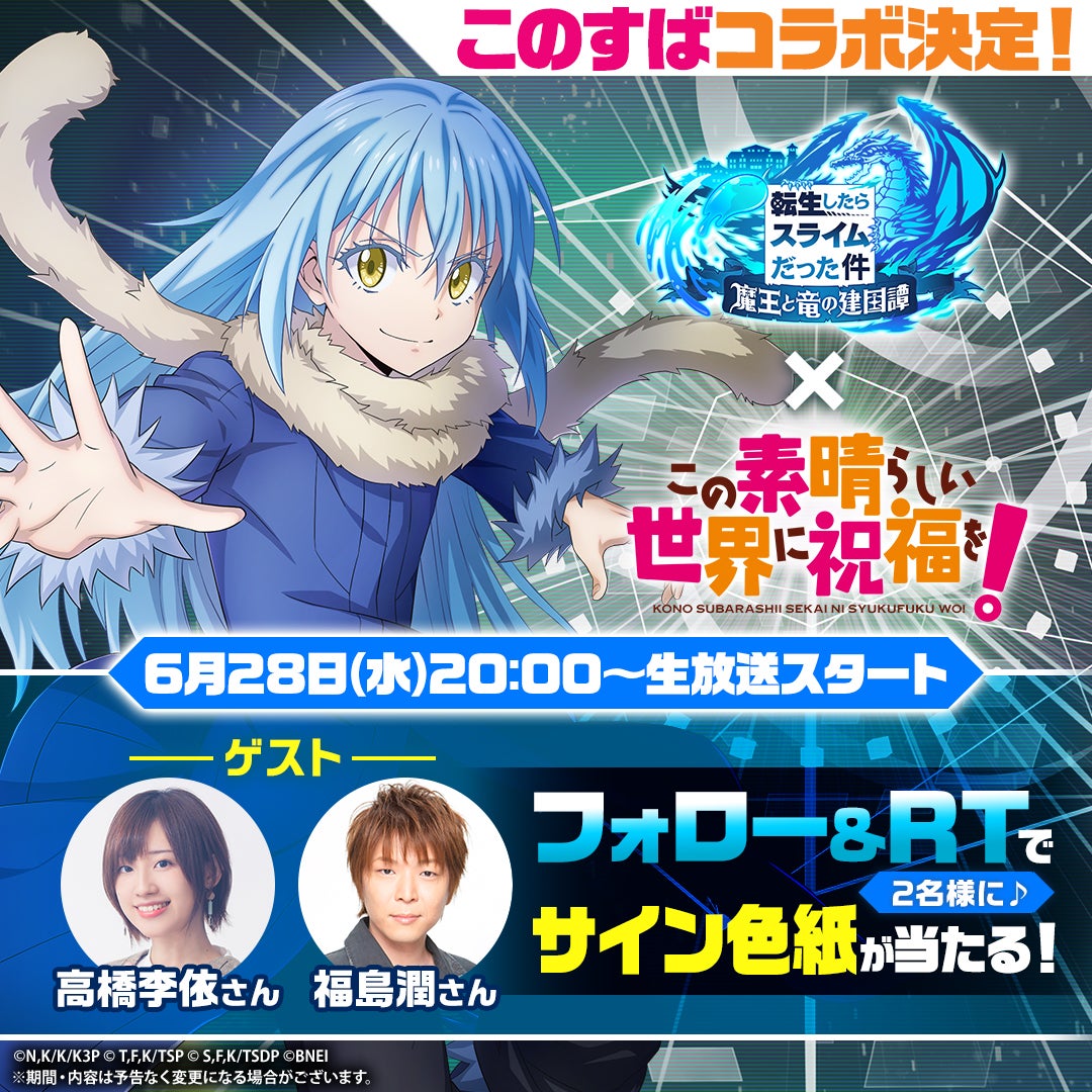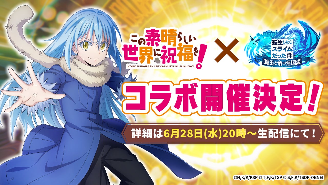 アプリ『転生したらスライムだった件魔王と竜の建国譚』と「この素晴らしい世界に祝福を!」のコラボが決定!
