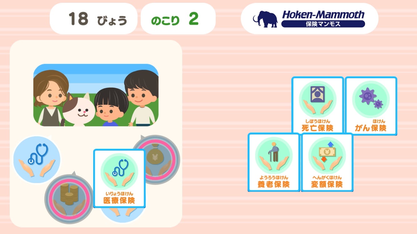 「ちょっと難しいな」と思われがちなお金のこと・保険のことを、アプリを通して親子で楽しくゲーム感覚で学習できるサービスをご提供します。ぜひ親子で会話をしながら、3種類のゲームをお楽しみいただき、お子様の金融教育にお役立てください。
