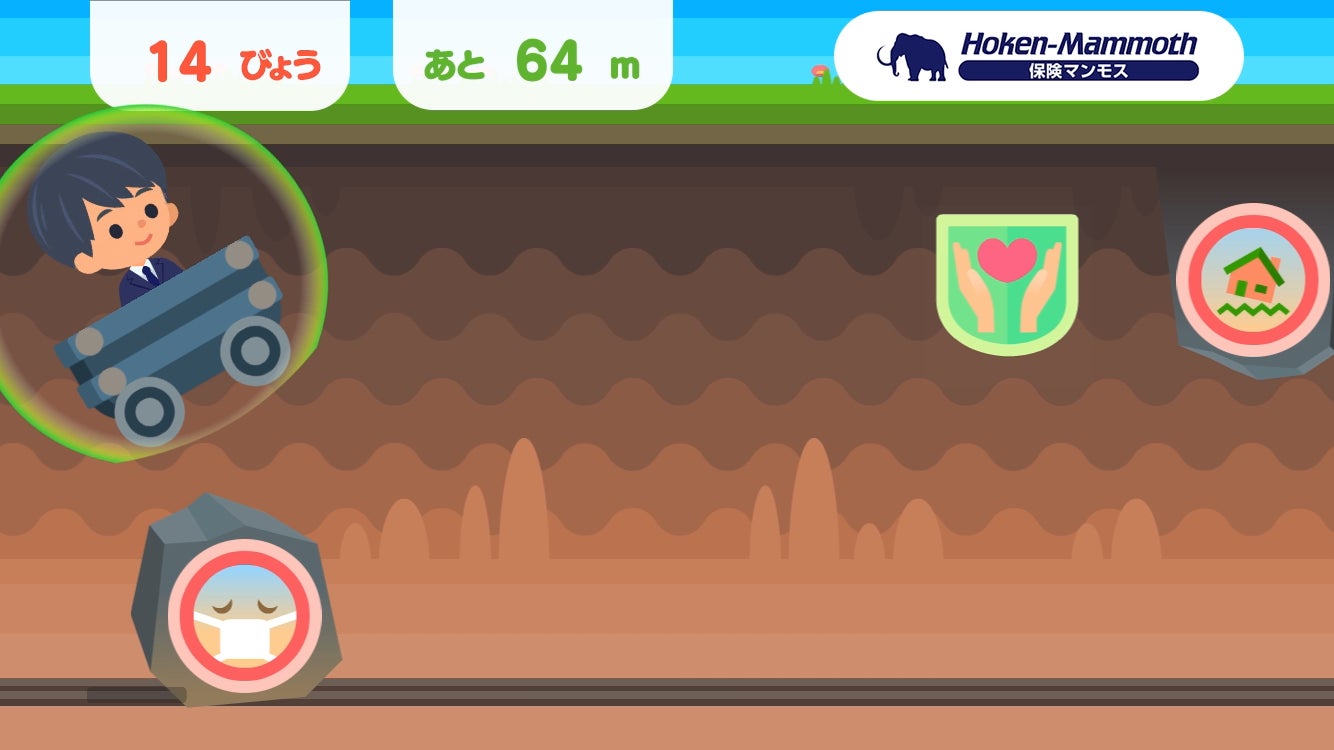 アプリ内店舗では「ほけんトロッコ」、「ほけんをえらぼう」、「すくすくマンモス」の3種のゲームをお楽しみいただけます。