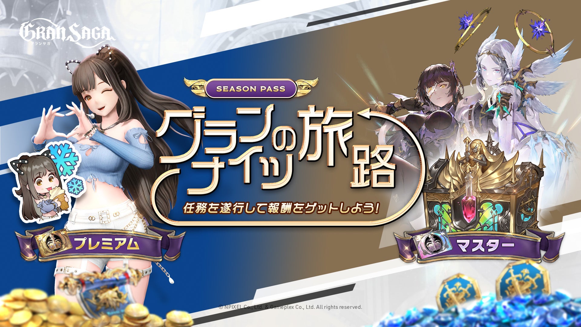 任務を遂行してランクを上げると様々な報酬が獲得できるイベント「グランナイツの旅路 シーズン21」を本日より開催いたしました!「PREMIUMシーズンパス」では、ユナの限定スタンプや限定衣装を入手することができます!なお、詳細はゲーム内にてご確認ください。