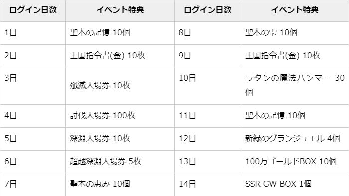 ※イベントの注意事項については、グランサガ公式サイトのお知らせ( https://forum.gransaga.jp/#/view/1/791 )をご確認ください。