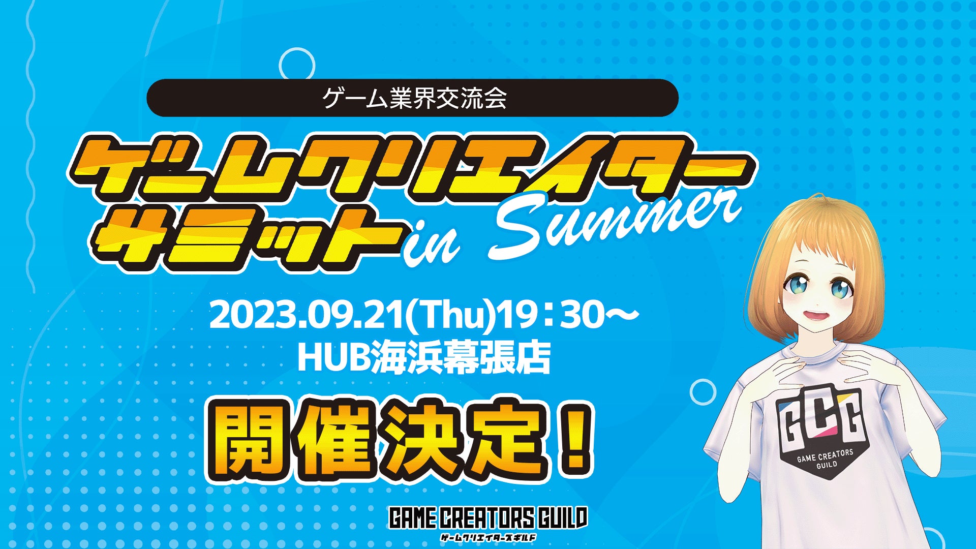 「ゲームクリエイターサミット in Summer」は、ゲーム業界で活躍されているすべての皆さまを対象とした交流会となっております。今回は日本最大のゲーム展示会「東京ゲームショウ」の初日にHUB海浜幕張店にて開催することとなりました。ぜひ交流会にご参加いただき、今後の活動にお役立てください。皆さまのご参加をお待ちしています。