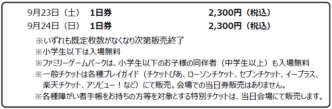■9月23日・24日 一般公開日 チケット販売のご案内(小学生以下は無料)