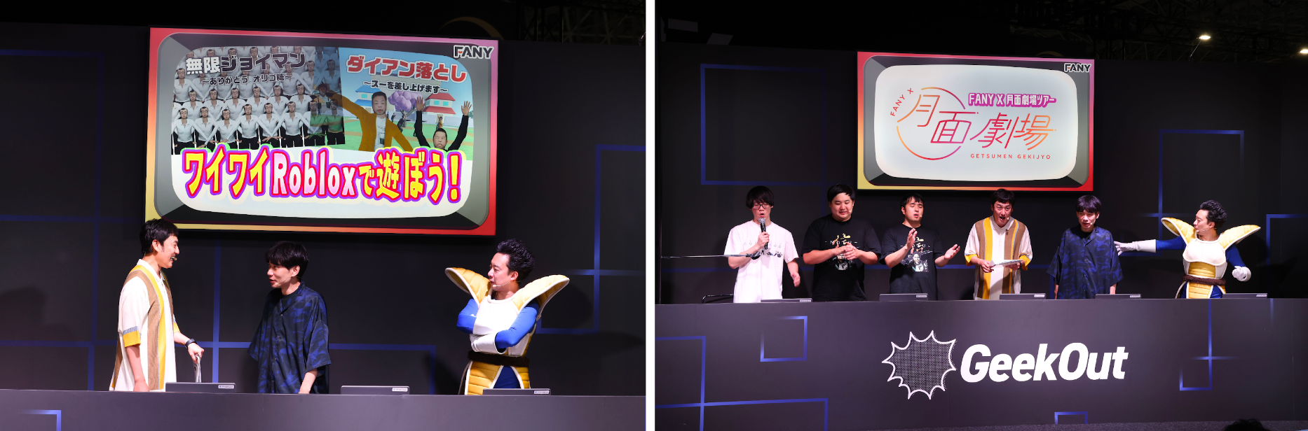 また、吉本興業による記者会見も実施。芸人の野田クリスタル氏とGAG ひろゆき氏、吉本興業の田中爽太氏がステージに登場し、野田ゲー「信 ~NOBU~」のRoblox版開発や、月面劇場のRoblox展開について詳細を語りました。