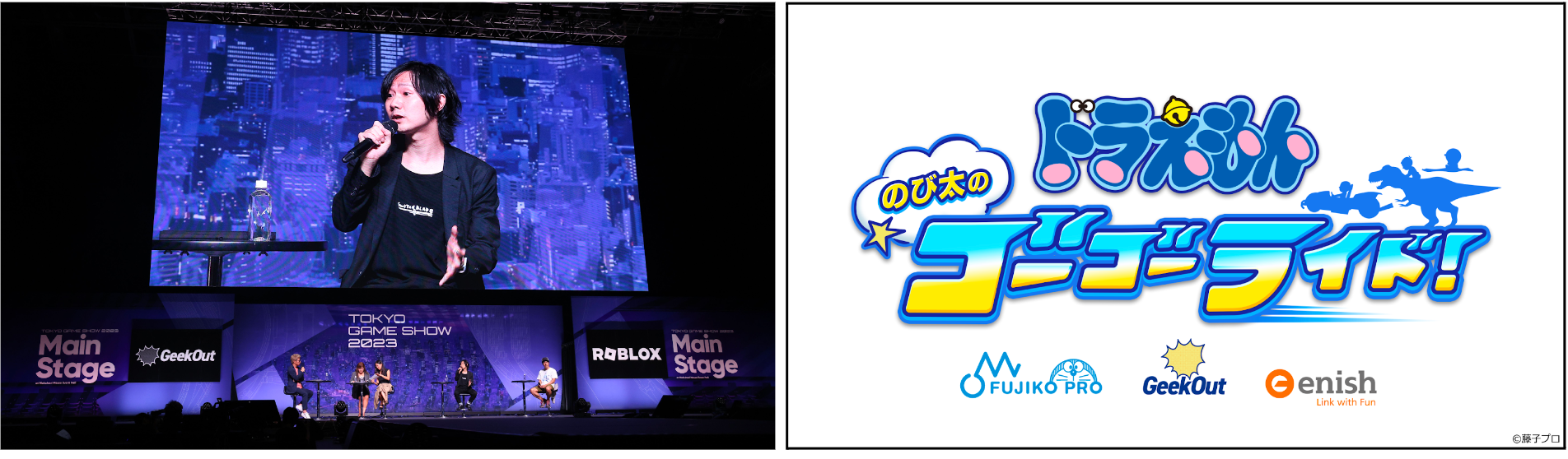 その後、2つ目のパネルディスカッション「Robloxと日本のIP 」では、株式会社藤子・F・不二雄プロ 関野氏と株式会社enish 大谷氏が登壇し、Robloxで展開される新タイトル「ドラえもん のび太のゴーゴーライド!」を発表しました。