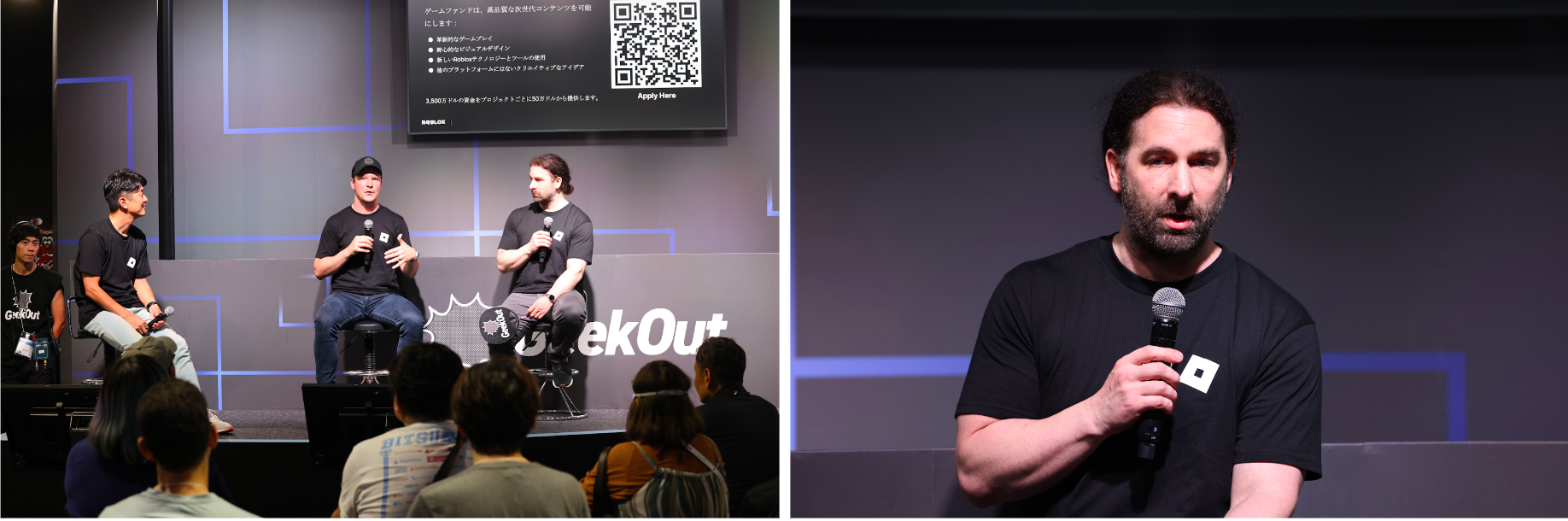 ビジネスデイの初日には、MCに田村淳氏を迎え、ステージイベント「Robloxが解き放つ新たな可能性:日本におけるクリエーションの未来」をGeekOut主催にて開催しました。