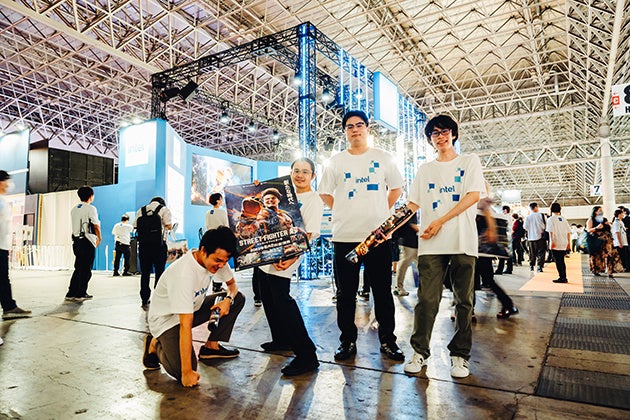 本大会で決勝ラウンドに進出した学生4名は、『東京ゲームショウ2023』にてインテル株式会社が出展するブースでのイベント制作現場で職業体験をすることができる権利を獲得!実際にインテルブースを訪れるお客様への声掛けやサポートなどを担当しました。
