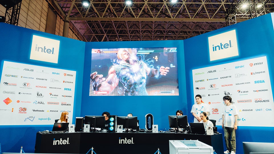 インテルブースで行われた特別ステージでは、「STREET FIGHTER 6」プロデューサーの松本脩平氏、ディレクターの中山貴之氏が登場!学生たちは直接質問をする機会をいただき、憧れのプロからゲーム開発の裏側や実際のお仕事について教えていただくことができました。