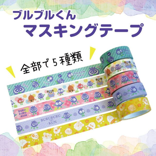 ブルブルくんと仲間たちの可愛くて使いやすいデザインのマスキングテープ。デコレーションやラッピング、装飾に映えるアイテムです。