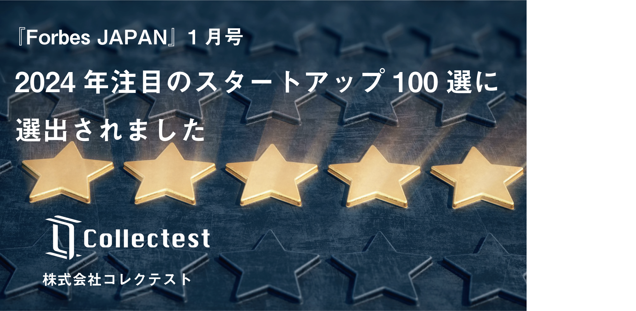 株式会社コレクテストは、『Forbes JAPAN』1月号(リンクタイズ、2023年11月25日発売)の特集「次代を担う新星たち 2024年注目の日本発スタートアップ100選」として、スタートアップ100社が掲載。その1社として、当社が掲載されました。