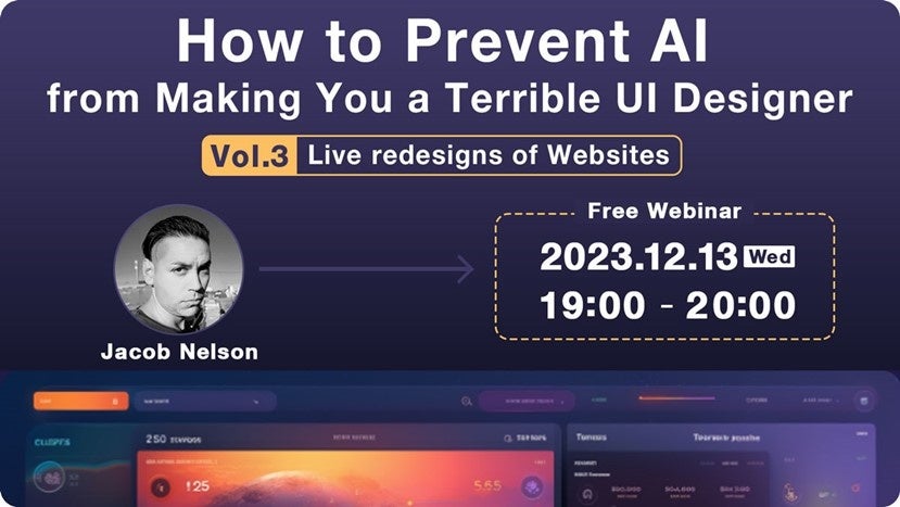 2023/12/13(WED) Free webinar “UI Design Solutions Vol 3:Live redesigns of Websites”