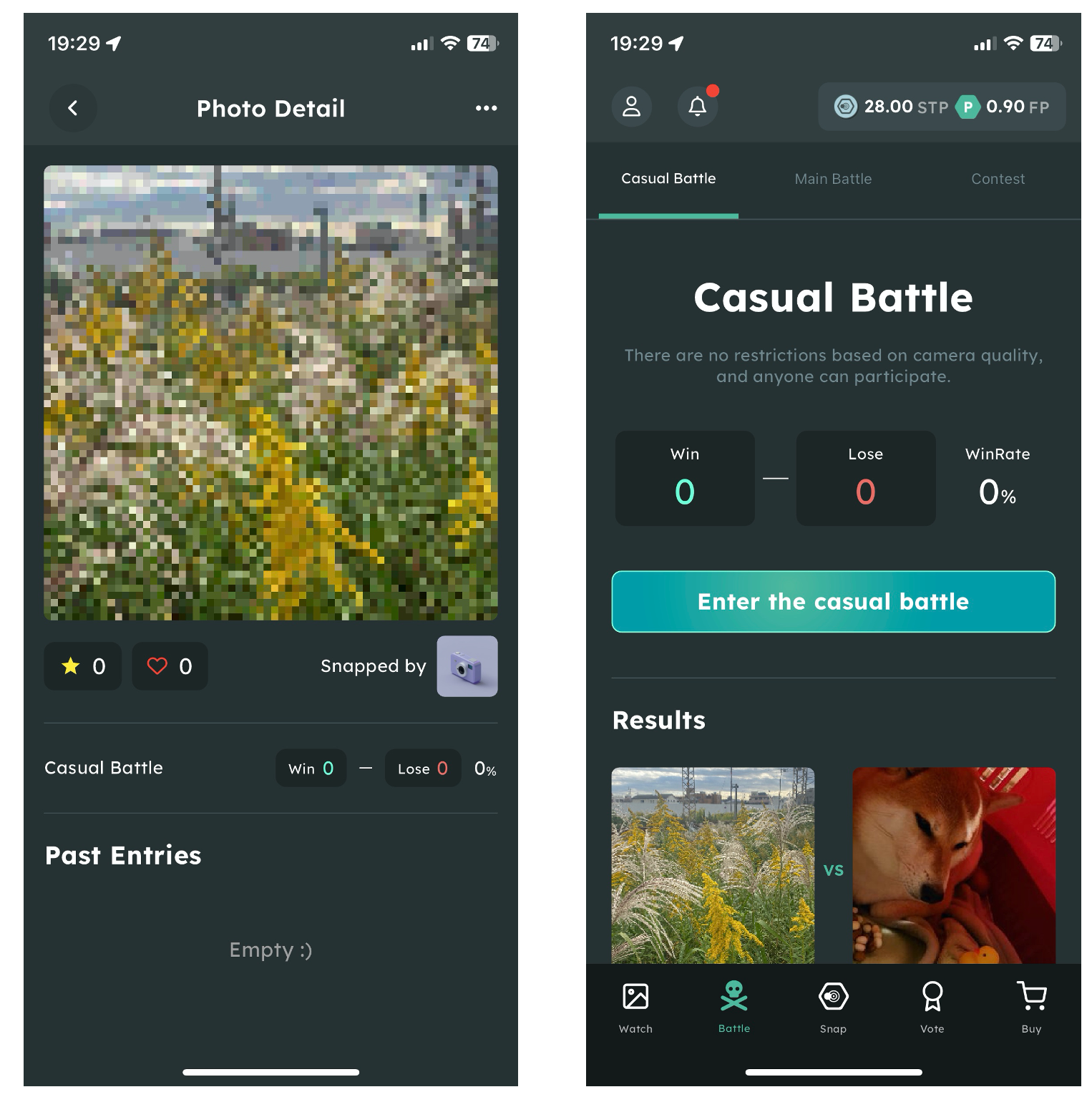 ユーザーは、カメラNFTを活用して撮影を行い、それにより独自のトークン(注2)を獲得できます。さらに、トークンを用いてカメラの性能を向上させることで、より精巧な画質での撮影や、トークン獲得量の増加が可能となります。特定の画質基準を超えた写真はバトルへのエントリー資格を得て、バトルでの勝利によるトークン獲得も可能です。