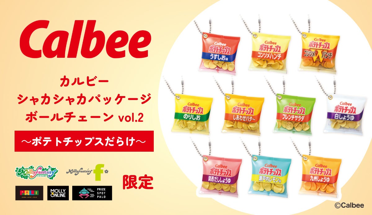 『カルビーポテトチップス』がミニサイズのマスコットボールチェーンになってモーリーファンタジー・PALO限定プライズとして登場!「うすしお味」「コンソメパンチ」など人気の定番の味から「白しょうゆ」「関西だししょうゆ」「瀬戸内レモン味」「九州しょうゆ」など地域限定味もラインナップし、『カルビーポテトチップス』をかわいいマスコットに仕上げました。「のりしお」「フレンチサラダ」など、各種ポテトチップのテクスチャーも再現。推し味をゲットできるバリエーションとシャカシャカという音も楽しい全10種類です。