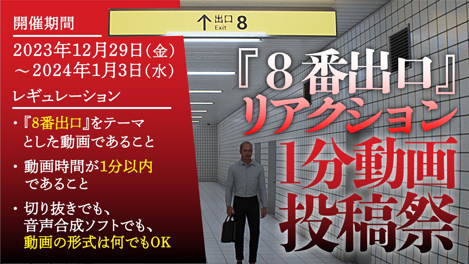 ニコニコでは、インターネット上で話題を集めている短編ホラーゲーム『8番出口』プレイ中の様々なリアクション動画を募る投稿祭を開催いたします。