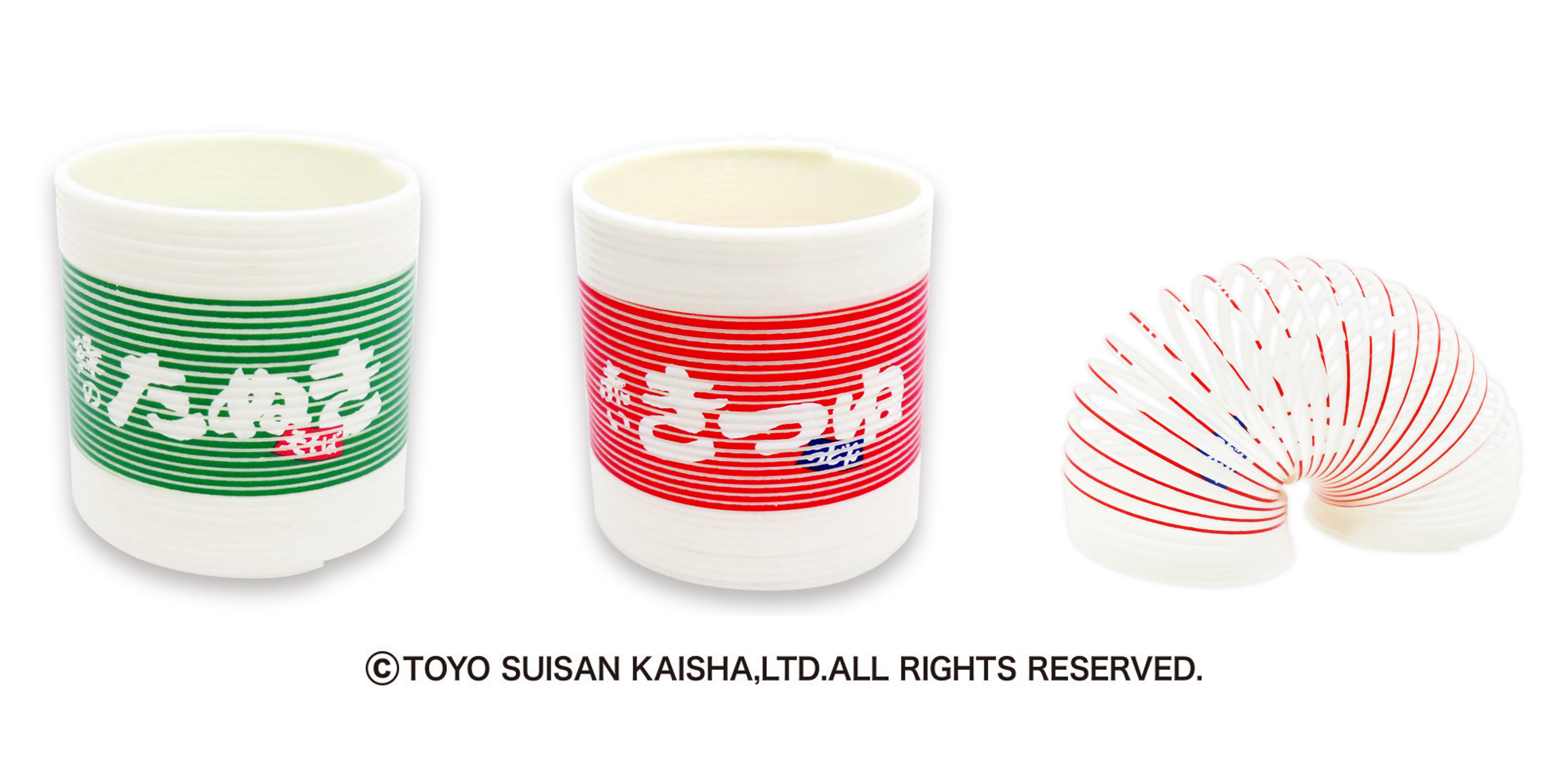 『赤いきつねうどん』、『緑のたぬき天そば』のロゴがデザインされたスプリング。