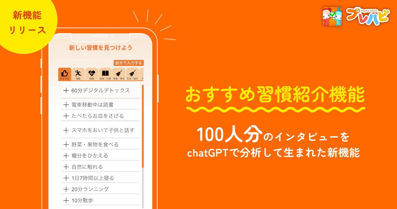 株式会社Play Life Studioは11月xx日、ゲーミフィケーション習慣化アプリ「プレハビ」に新機能である「おすすめ習慣紹介機能」を搭載したことを発表しました。