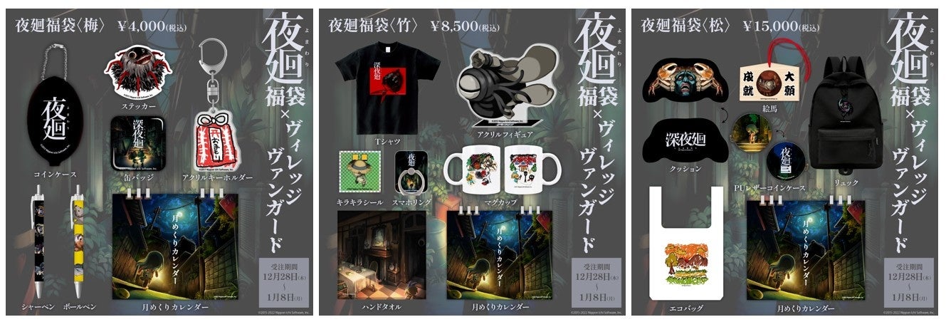 2023年12月28日(木)より、夜道探索アクションゲーム【夜廻】とヴィレッジヴァンガードのコラボ福袋が発売決定!!どこか懐かしい恐怖心と共に夜の街を探索する大人気アクションゲーム【夜廻】が福袋企画で登場!月めくりカレンダーやTシャツにリュック、クッションと!どれもファン心をくすぐるスペシャルなアイテムばかり!1年の感謝を詰め込んだ期間限定企画となっております!この機会を絶対にお見逃しなく!!