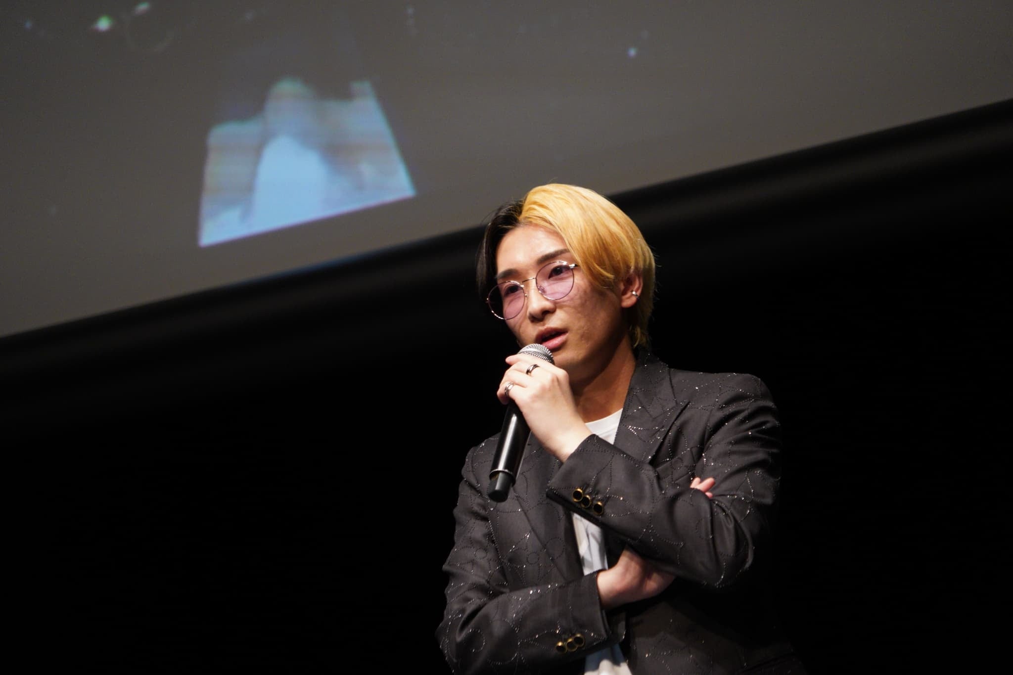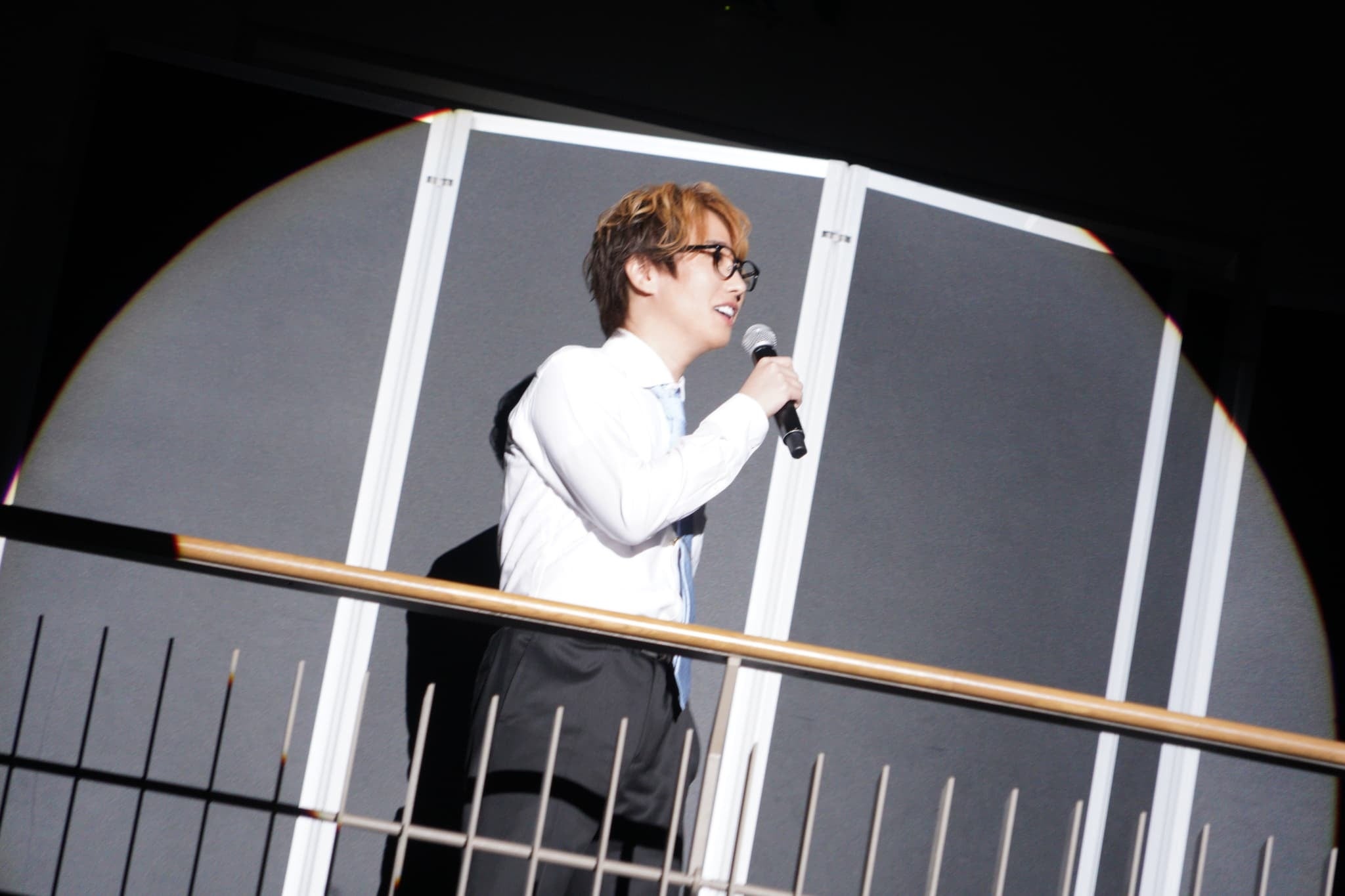 来場者の目線がステージに集まるなか、ついにライブがスタート。会場が盛り上がりを見せるなか、オープニングではスポットライトに照らし出され、株式会社EGG代表・飯田祐基が登場。