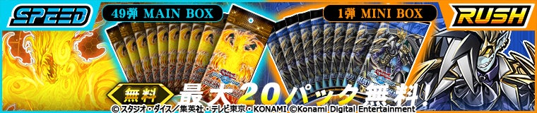 キャンペーン期間中のログインで、【SPEED】第49弾メインBOX「フェニックス・ブレイズ」と【RUSH】第1弾ミニBOX「激奏のヘヴィメタル」をそれぞれ10パック、合計で最大20パックを無料ゲットできるキャンペーンです。